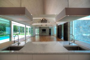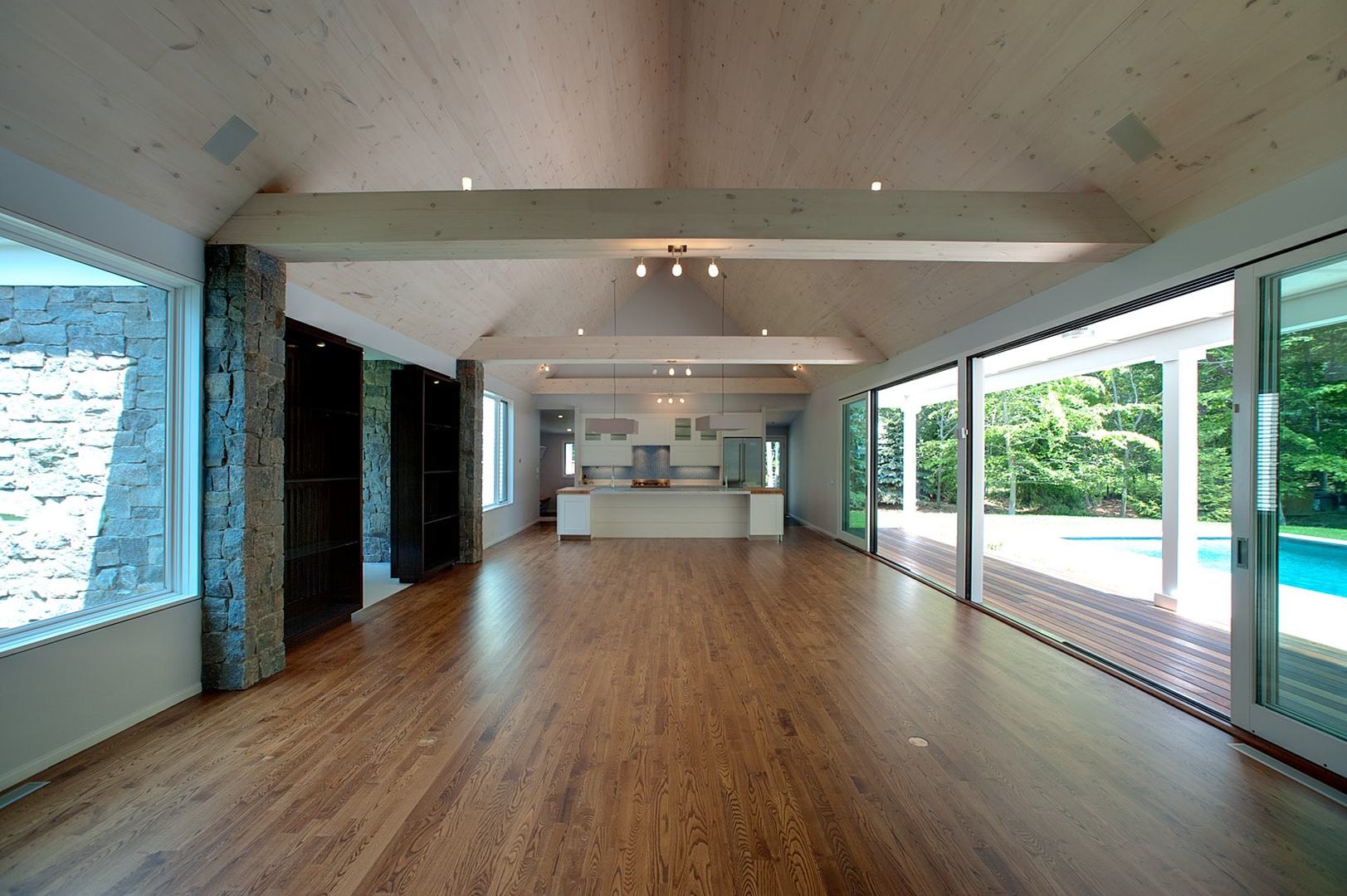 Al Giaquinto worked collaboratively with Architect Alexander Gorlin, FAIA on this Modern BarnĀ® debut. Indoor and outdoor space blend seamlessly together through walls of glass, natural materials and find their center in the open space of the 60 x 25 ft living, dining and entertaining area. This project is a unique compound of barn-like structures, set ideally on a private, quiet, near-Village lane.