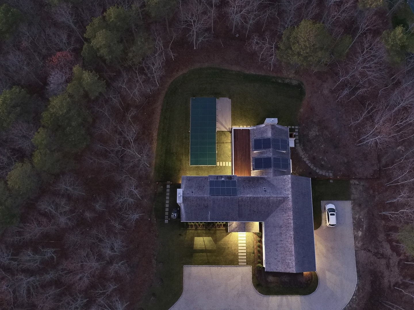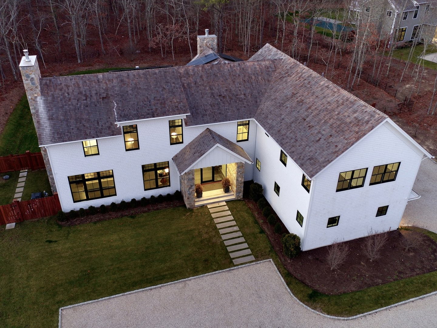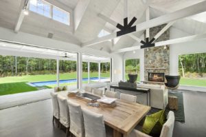 This 7,000 sq. ft. Modern BarnĀ® in set on 2.1+/- private acres. Featuring 7 bedrooms, six and one-half baths, a first floor junior master suite and a finished lower level, including two bedrooms. The custom gourmet kitchen comes with adjoining butler’s pantry, dining room, and living room with rustic oak-paneled ceiling. The master bedroom includes a fireplace, radiant floors and a freestanding bathtub. Additional amenities include a summer kitchen; two-car garage; Gunite pool; outdoor shower; and a covered stone porch.