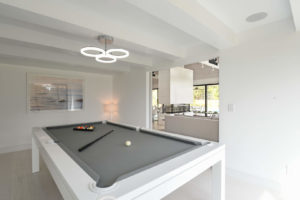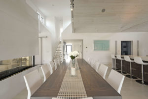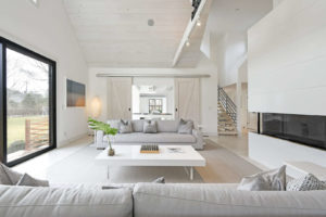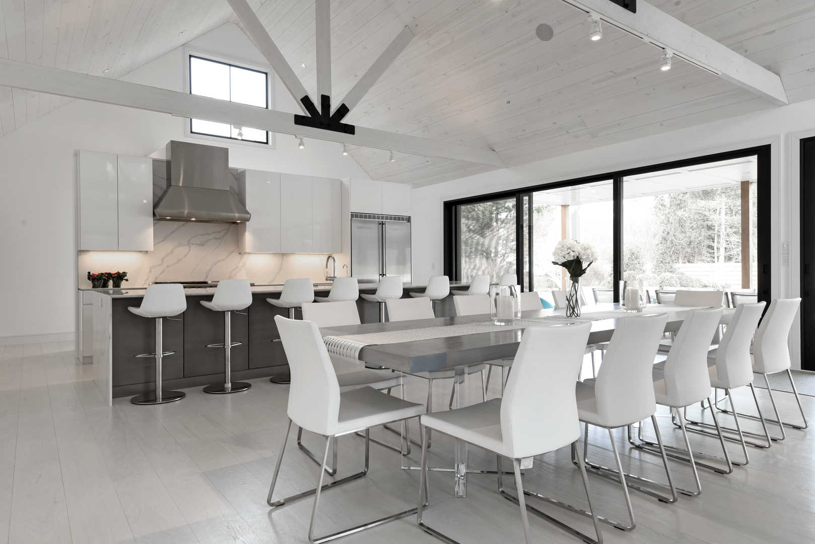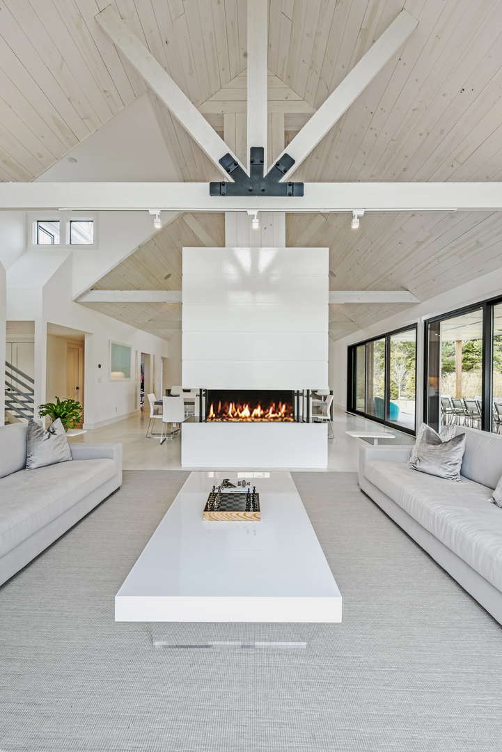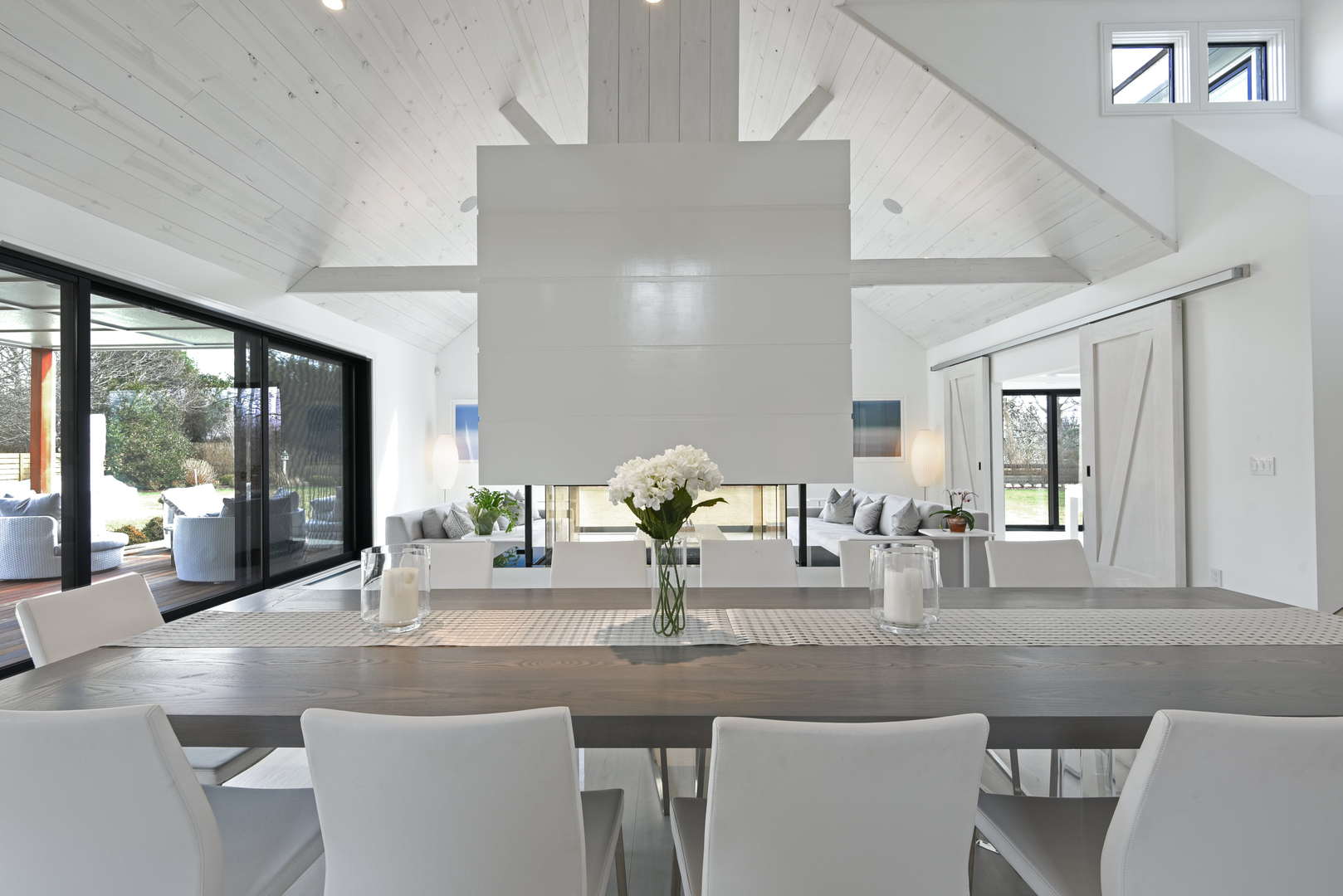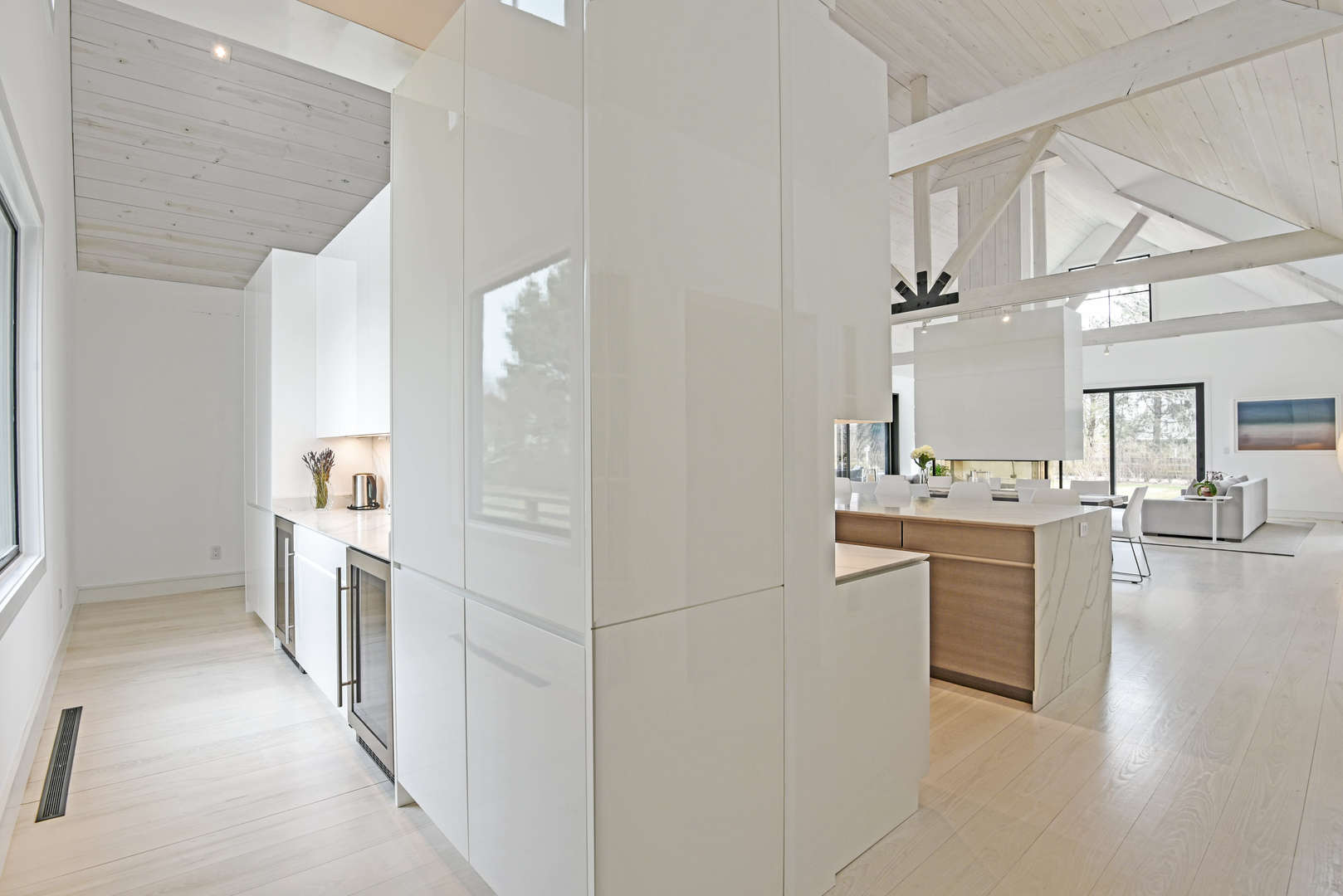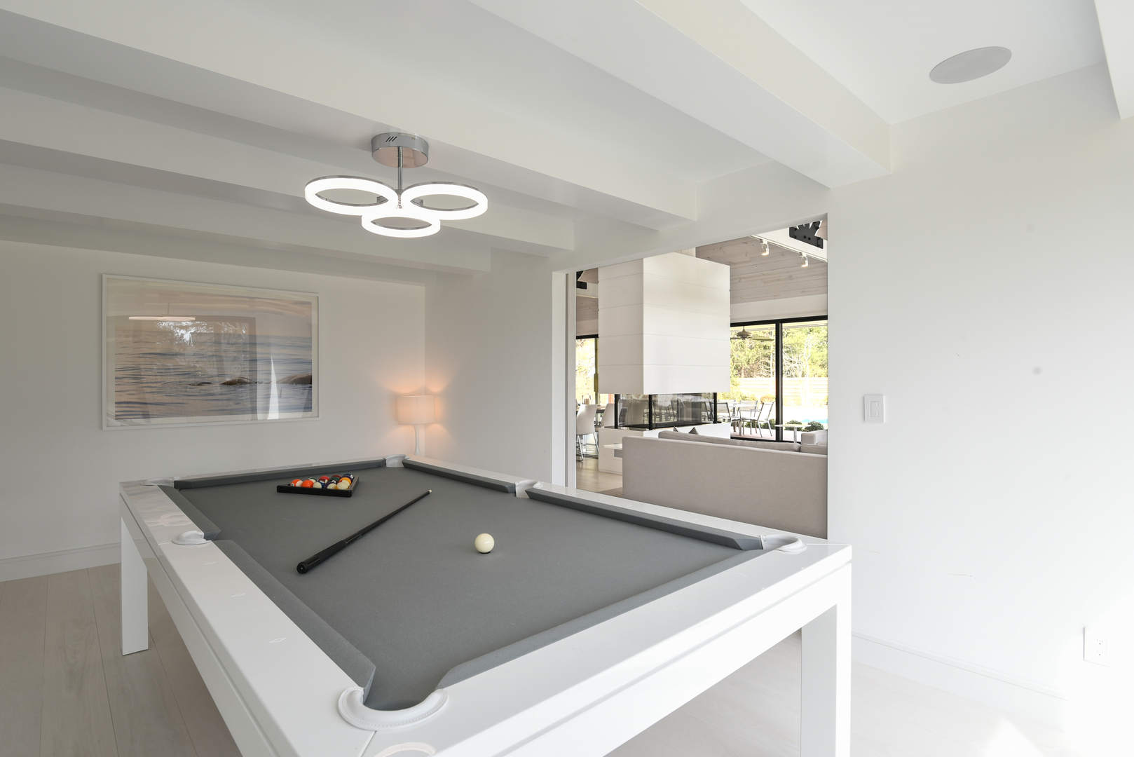 Adding 3000 sq. ft. to this home converted the existing structure into a Modern Barn®. Doubling the size of the house achieving a seven bedrooms and six and a half bathrooms. The Barn Room, houses a new kitchen with a 16’ kitchen island and dining area opening onto the covered deck. Behind the kitchen, is lined with pantry storage closets and 2 beverage coolers. The new lower level boasts two new bedrooms en-suite, a gym, and a rec room.